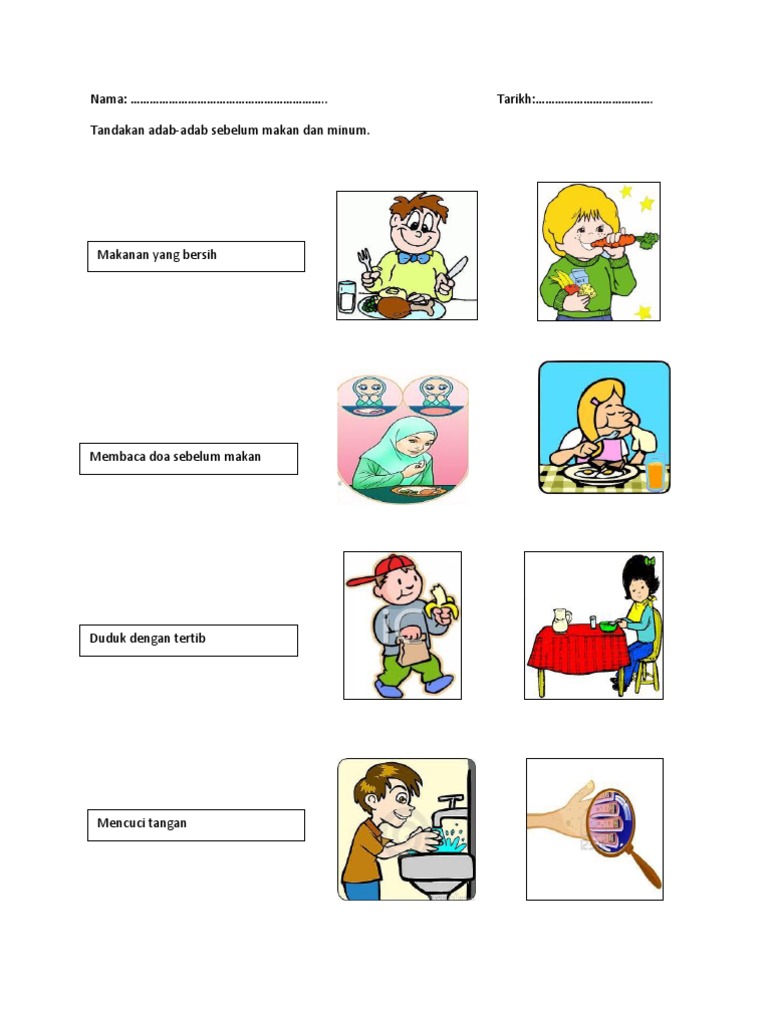 Adab Makan Dan Minum Activity For Pra Sekolah